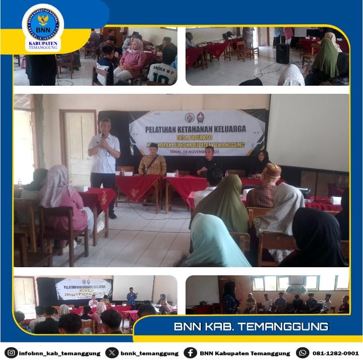 Kategori Kategori: Rehabilitasi 14 November 2025 07:05:00 6 Layanan Assesmen Klinik Pratama BNNK Temanggung Selengkapnya Kategori: Pencegahan dan Pemberdayaan Masyarakat 13 November 2025 07:04:00 4 Program Intervensi Ketahanan Keluarga "Merajut Asa" Kecamatan Gemawang Kab.Temanggung Selengkapnya Kategori: Pencegahan dan Pemberdayaan Masyarakat 13 November 2025 07:03:00 5 Sosialisasi P4GN kepada siswa Sanggar Kelompok Belajar ( SKB ) Temanggung Selengkapnya Kategori: Rehabilitasi 12 November 2025 12:56:00 12 Kunjungan Kerja Plt. Kepala BNN Kabupaten Temanggung terkait Koordinasi Layanan Rehabilitasi Berkelanjutan Selengkapnya Kategori: Rehabilitasi 10 November 2025 08:02:00 7 Bimbingan Teknis Penguatan Kapasitas FKTP Kesehatan (Klinik) Selengkapnya Kategori: Pencegahan dan Pemberdayaan Masyarakat 10 November 2025 08:01:00 8 Program Intervensi Ketahanan Keluarga "Merajut Asa" Desa Padureso Kecamatan Jumo Kab.Temanggung Selengkapnya Kategori: Rehabilitasi 10 November 2025 07:59:00 13 Pendampingan Pemulihan Layanan Pascarehabilitasi / Bina Lanjut Selengkapnya Kategori: Pencegahan dan Pemberdayaan Masyarakat 11 November 2025 07:56:00 8 Program Intervensi Ketahanan Keluarga "Merajut Asa" Kecamatan Kranggan Kab.Temanggung Selengkapnya Kategori: Pencegahan dan Pemberdayaan Masyarakat 28 Oktober 2025 13:38:00 7 Program Intervensi Ketahanan Keluarga "Merajut Asa" Kecamatan Kaloran Kab.Temanggung Selengkapnya Kategori: Bersih Narkoba (Bersinar) 28 November 2025 13:26:00 13 Deteksi Dini melalui Tes Urine bagi Pegawai SATKER Temanggung Selengkapnya Kategori: Rehabilitasi 28 Oktober 2025 13:24:00 5 HOME VISIT LAYANAN PASCAREHABILITASI Selengkapnya Kategori: Pencegahan dan Pemberdayaan Masyarakat 29 Oktober 2025 13:23:00 7 Kegiatan Sosialisasi P4GN kepada siswa SMK N 2 Temanggung Selengkapnya FirstPrev23456NextLast