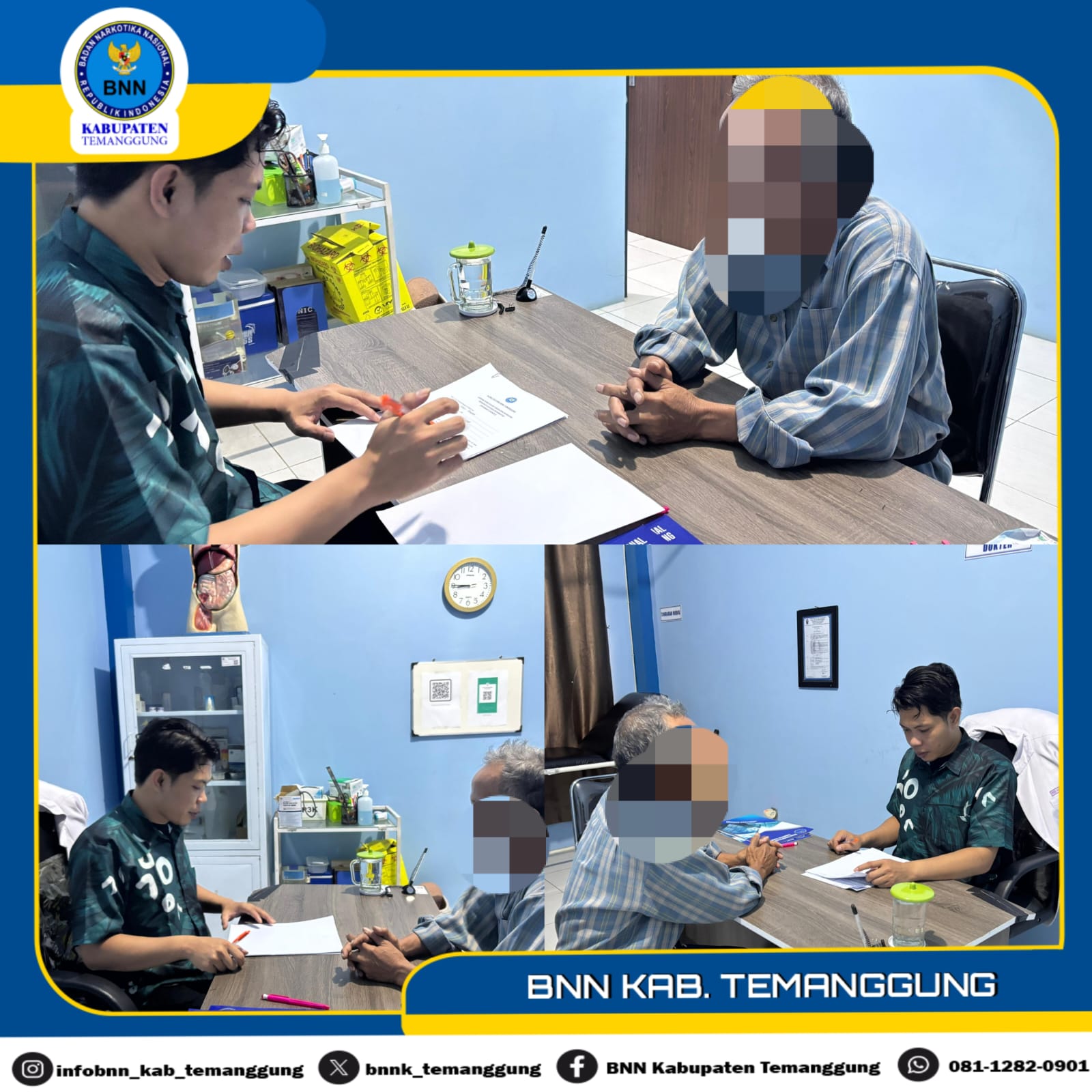Pada hariĀ Jumat tanggal 10 Oktober 2025, BNNK Temanggung melalui Seksi Rehabilitasi menerima konsultasi dari masyarakat. Hal yang dikonsultasikan terkait indikasi penyalahgunaan zat. Kemudian petugas BNNK Temanggung menjelaskan alur layanan rehabilitasi di Klinik Pratama BNNK Temanggung. Petugas BNNK Temanggung dan masyarakat tersebut menyusun rencana tindak lanjut dan pertemuan selanjutnya.